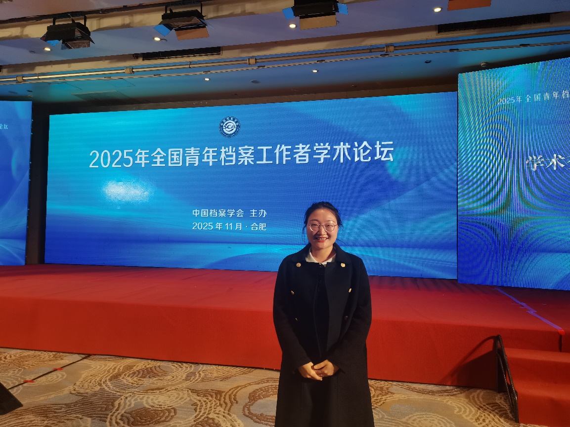 近日,由中国档案学会主办的2025年全国青年档案工作者学术论坛在安徽合肥圆满落幕。我馆编研室张婷同志凭借前期入选论坛征文的学术成果,前往参加了此次档案学术盛会,与来自全国各地的青年档案工作者共探行业发展方向,汲取前沿实践经验。