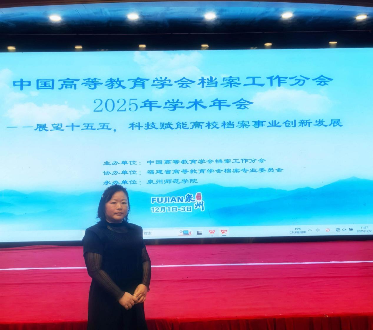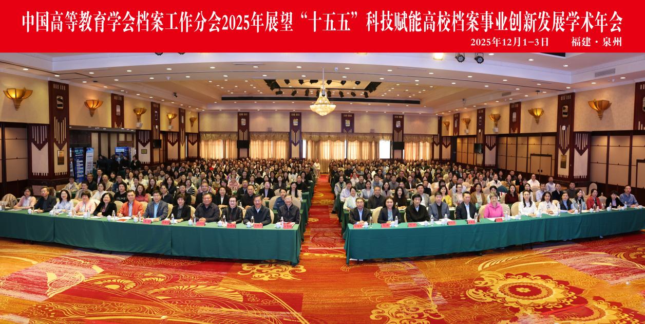 2025年12月1日至3日,中国高等教育学会档案工作分会2025年学术年会暨第七届理事会第四次会议在福建省泉州市顺利召开。全国百余所高校的档案管理专家、馆长及业务骨干330余人参会。我馆综合档案室陈黎黎老师参会。